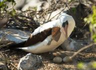 Nazca boobie with eggs, Punta Suarez, Española Island